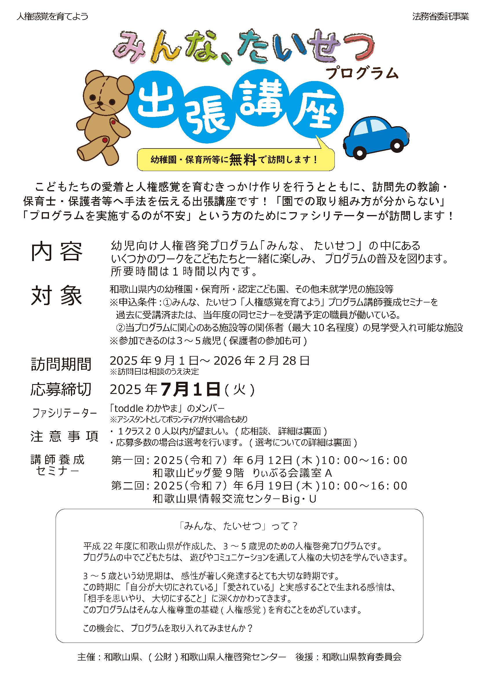 開始日時2026-02-14 10:00開催地和歌山市主催和歌山県 / (公財) 和歌山県人権啓発センターその他人権福祉・医療