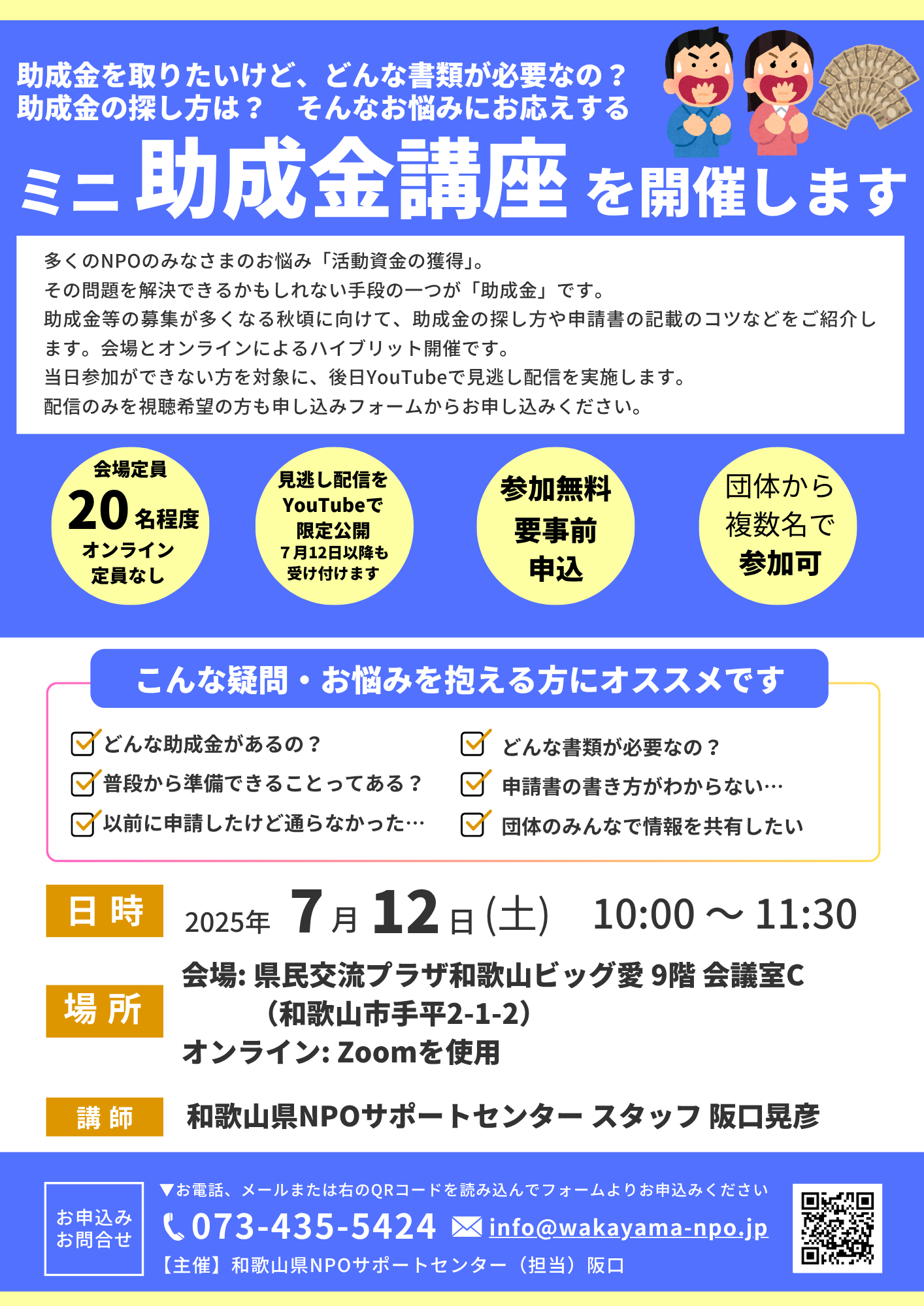 わかやまNPOセンターの活動を応援いただける方を募集しています。