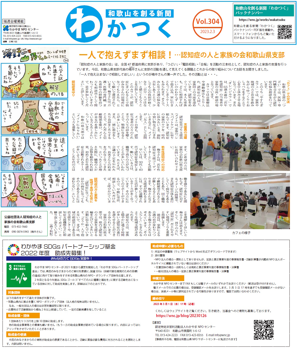 一人で抱えずまず相談!…認知症の人と家族の会和歌山県支部:「わかつく」304号