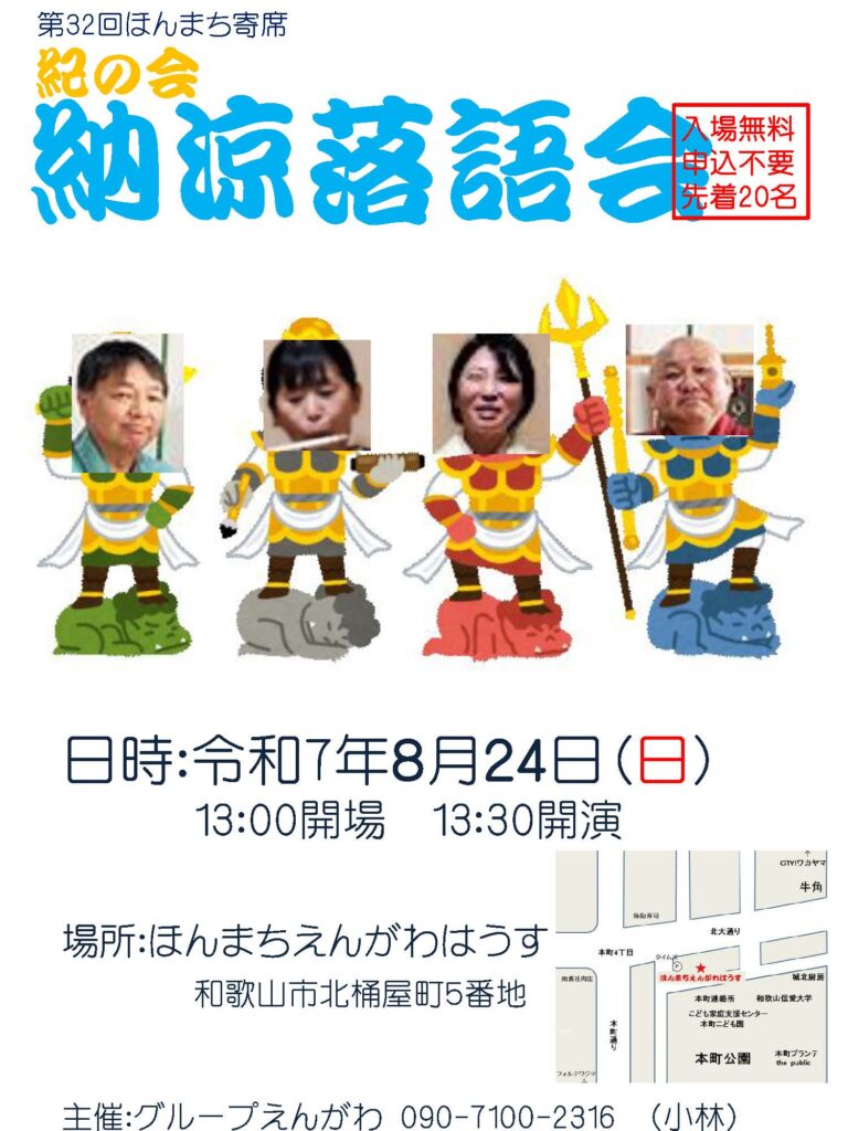 落語、笑いのボランティア団体「わかやま楽落会」による寄席が開催されます。