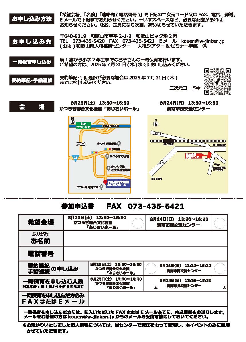 (公財)和歌山県人権啓発センター「人権シアター&セミナー事業」係