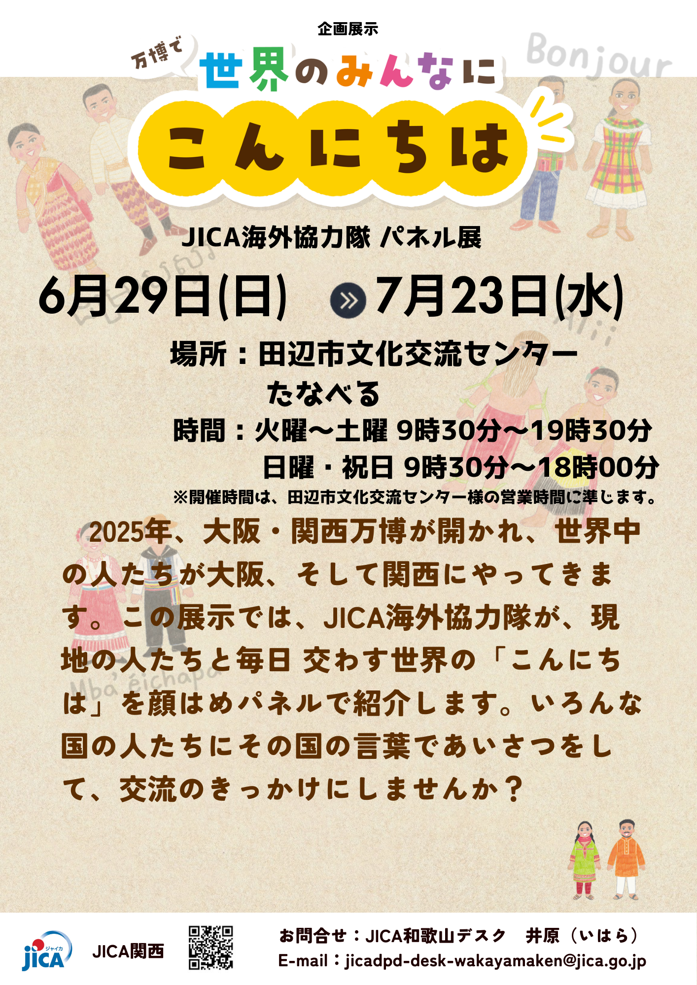6月29日(日)~7月23日(水)、和歌山県田辺市 「文化交流センター たなべる」にて「万博で世界のみんなにこんにちは!」展 が開催されます!