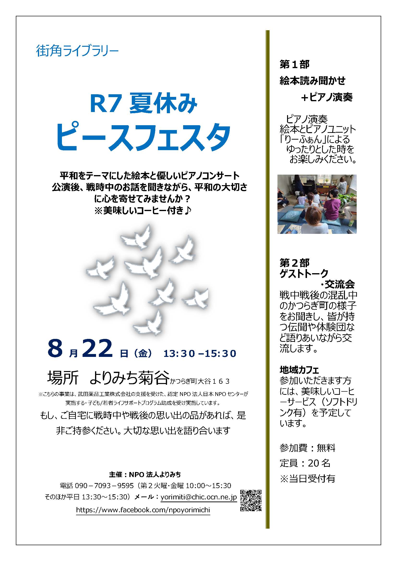 平和をテーマにした絵本と優しいピアノコンサート公演後、戦時中のお話を聞きながら、平和の大切さに心を寄せてみませんか?