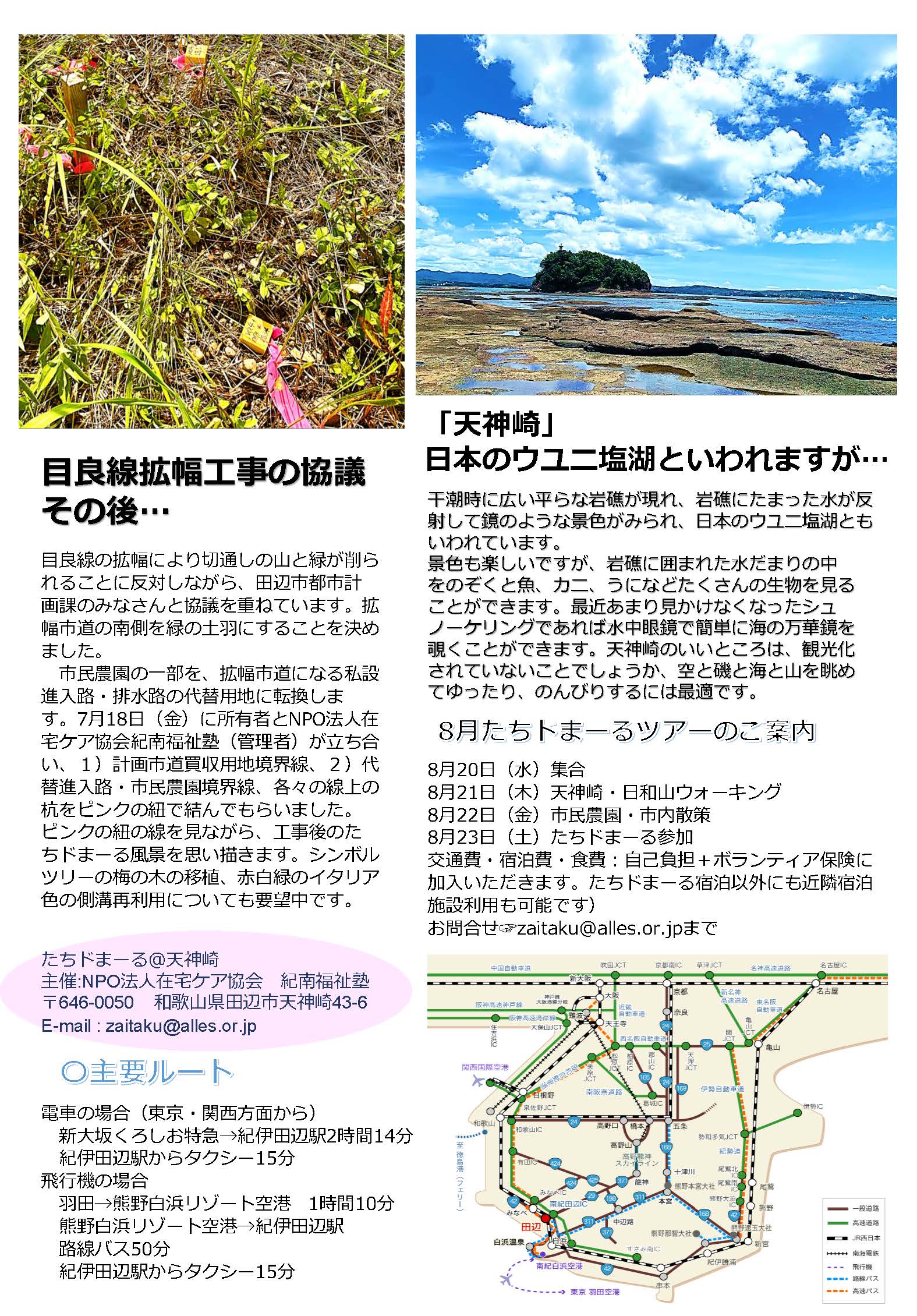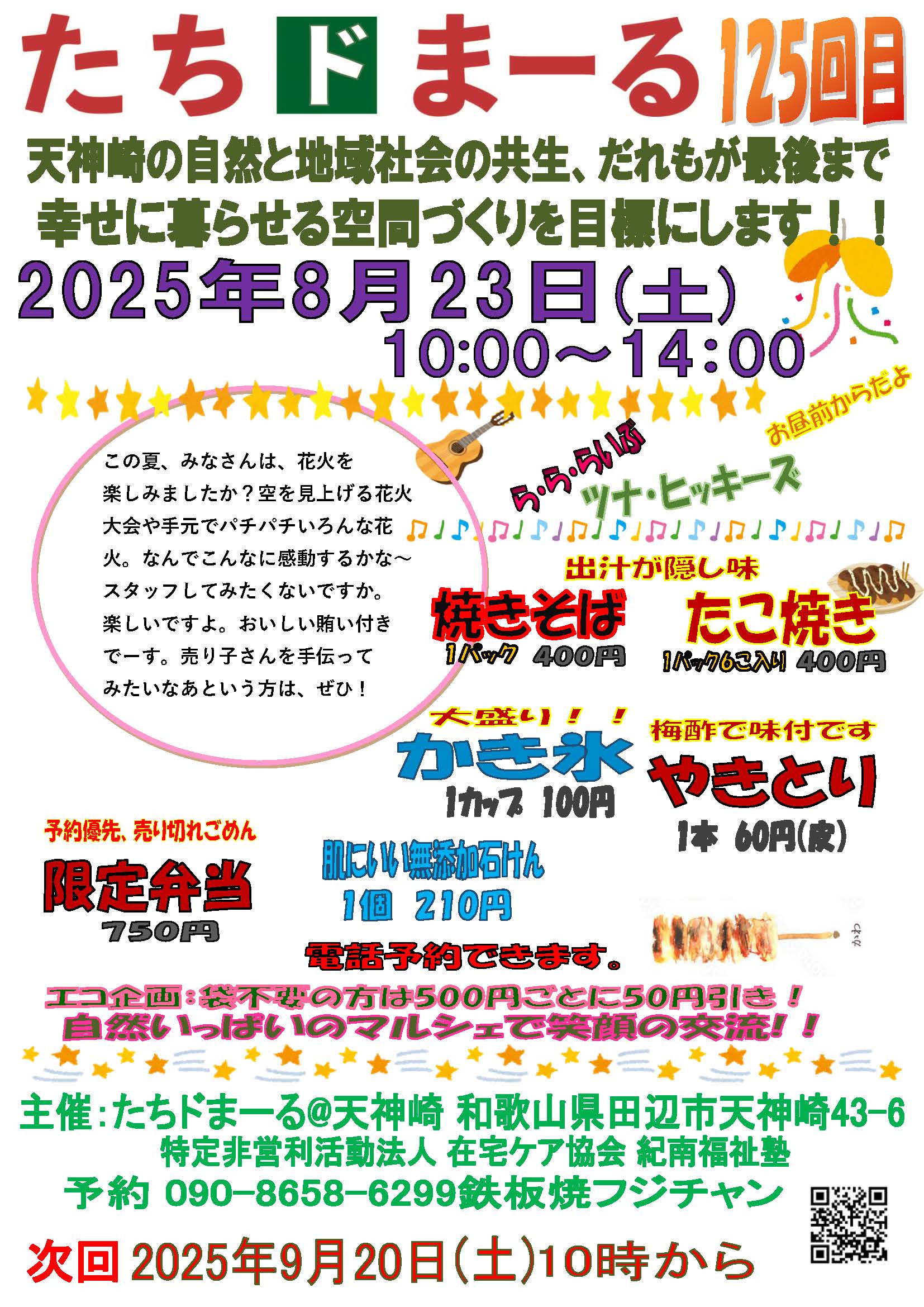 「たちドまーる」は、地域住民の交流を目的に、地元で楽しく続けられるイベントとして始まり、天神崎の自然と地域社会の共生、幸福の増進に寄与する新しい社会事業・活動を模索しています。
