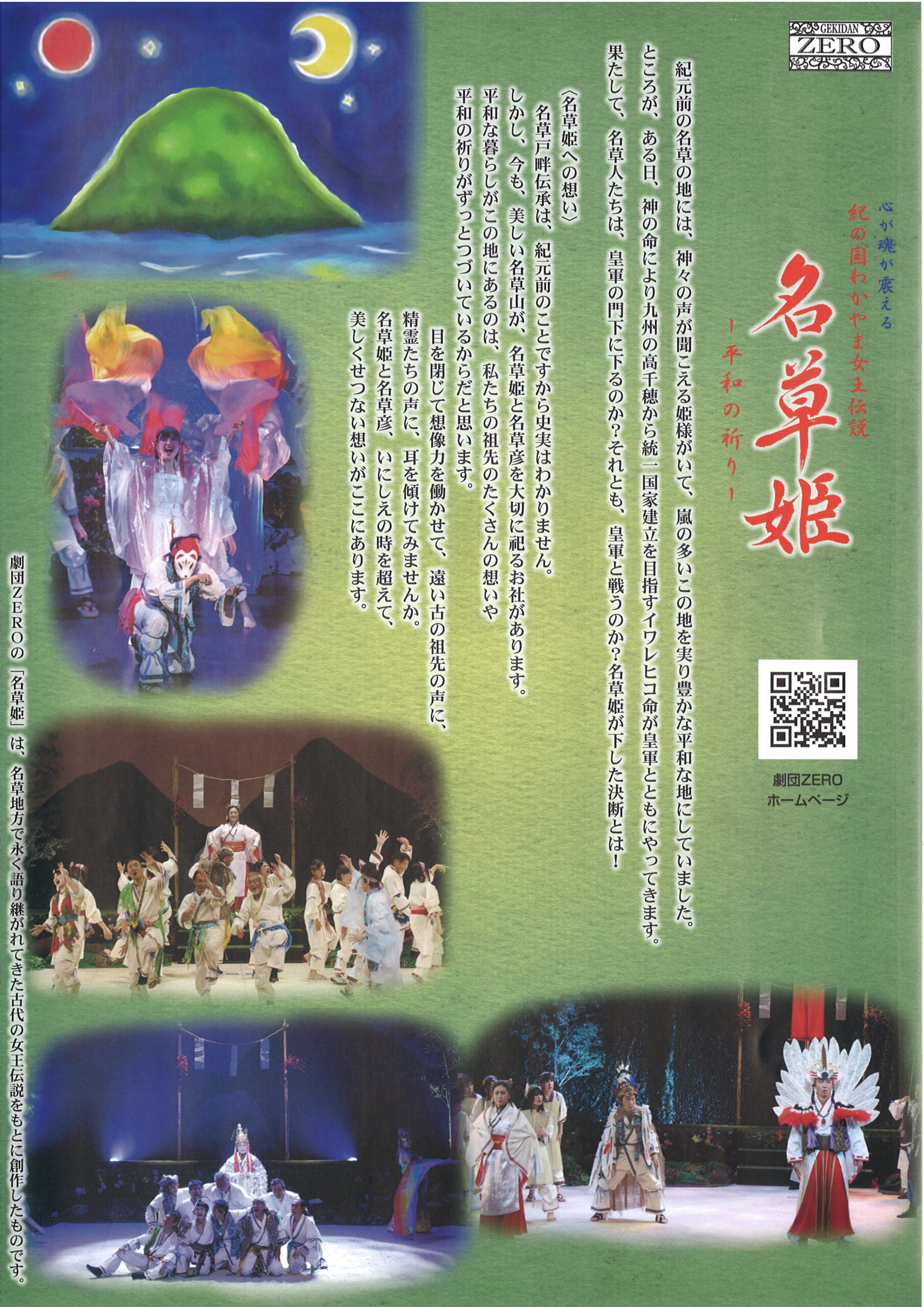 劇団ZEROの舞台「名草姫」は、永く語り継がれてきた口伝伝承をもとに創作しました。