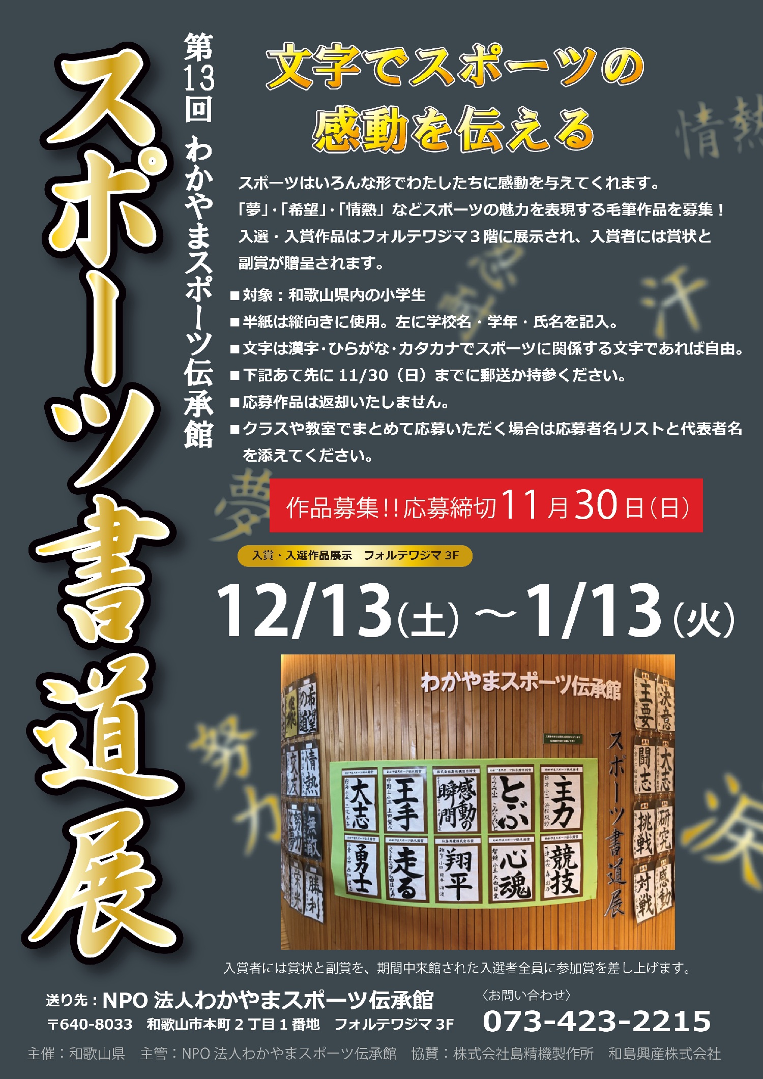 「夢」・「希望」・「情熱」などスポーツの魅力を表現する毛筆作品を募集!