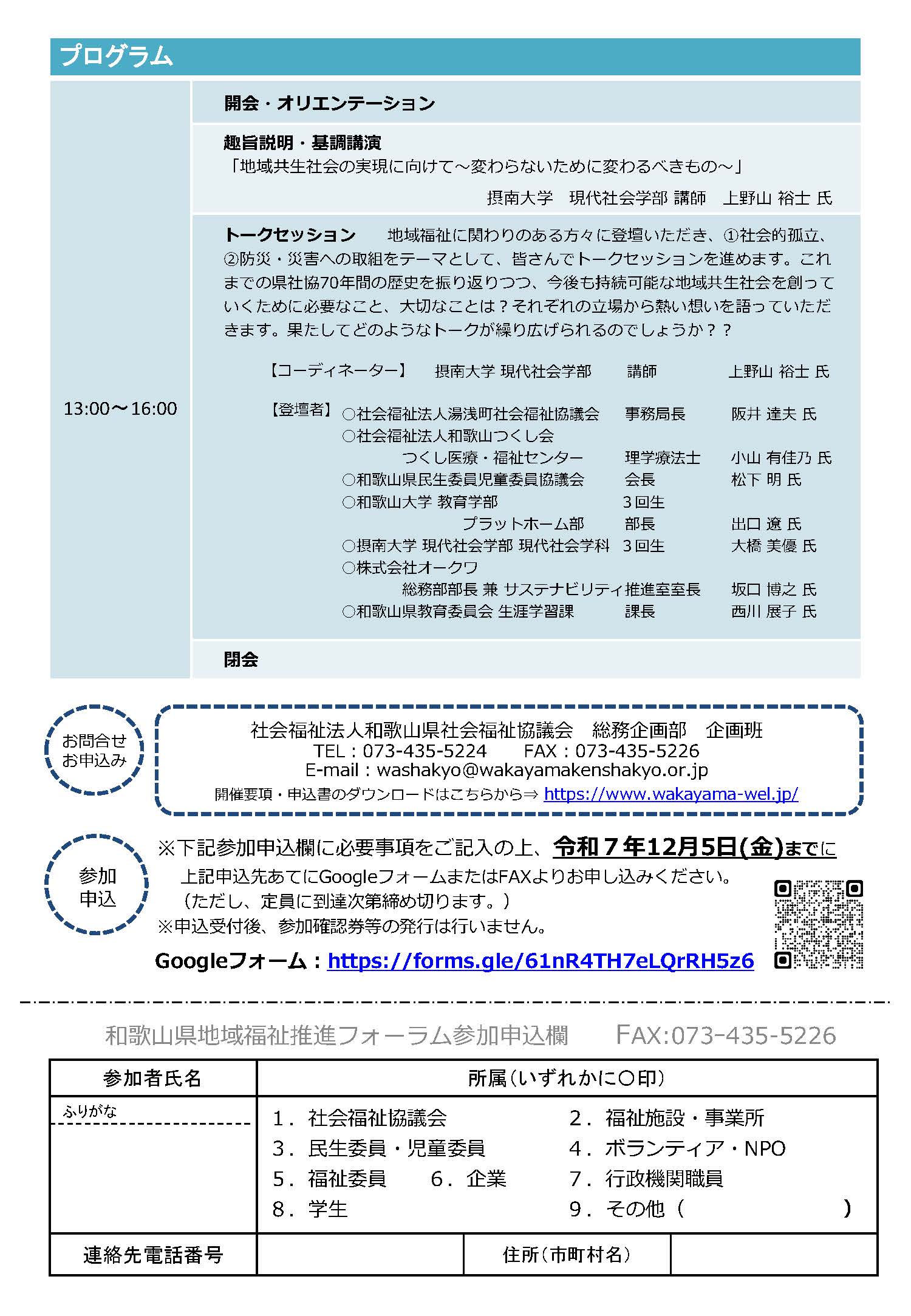 令和7年度 和歌山県地域福祉推進フォーラム:申込フォーム