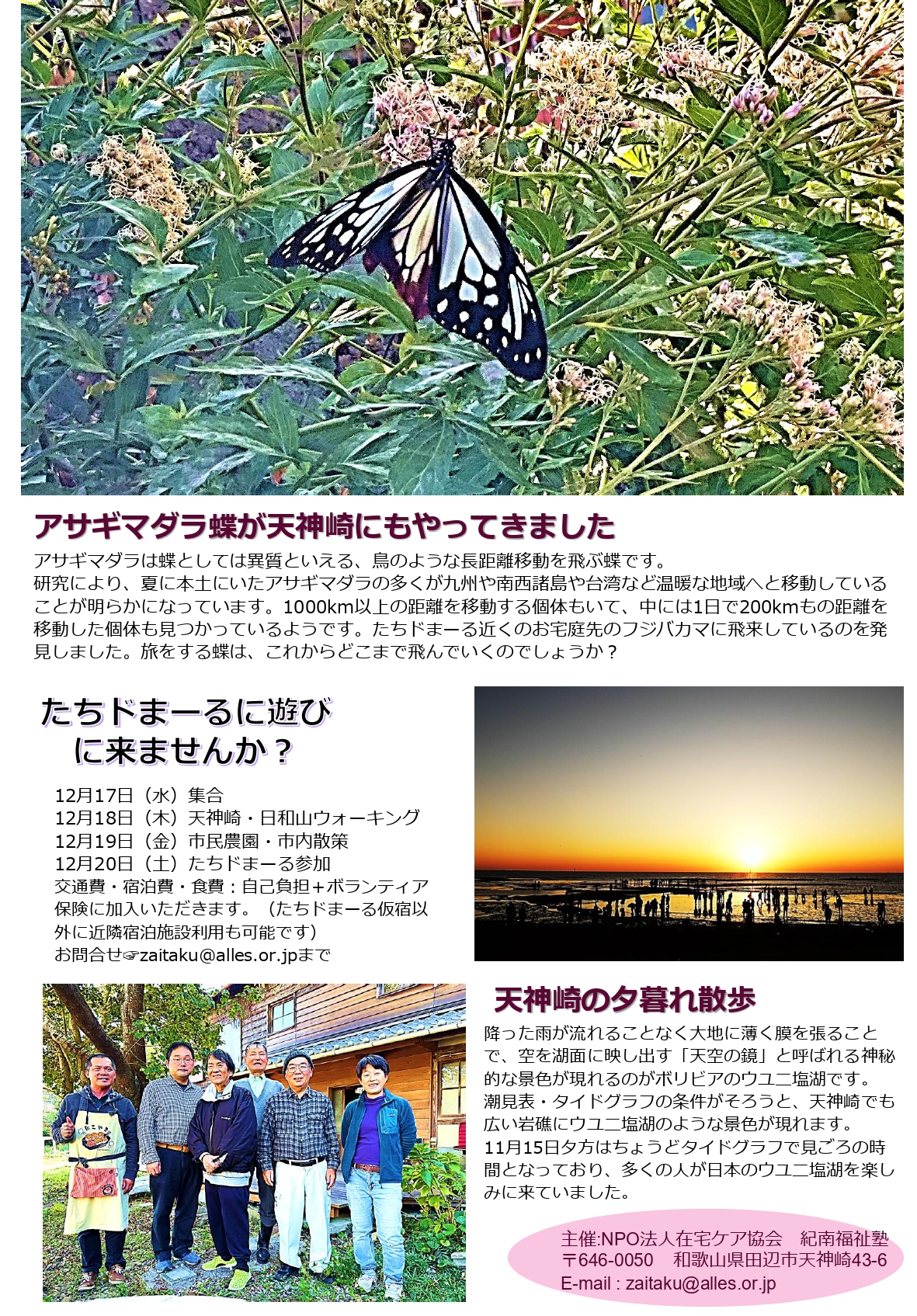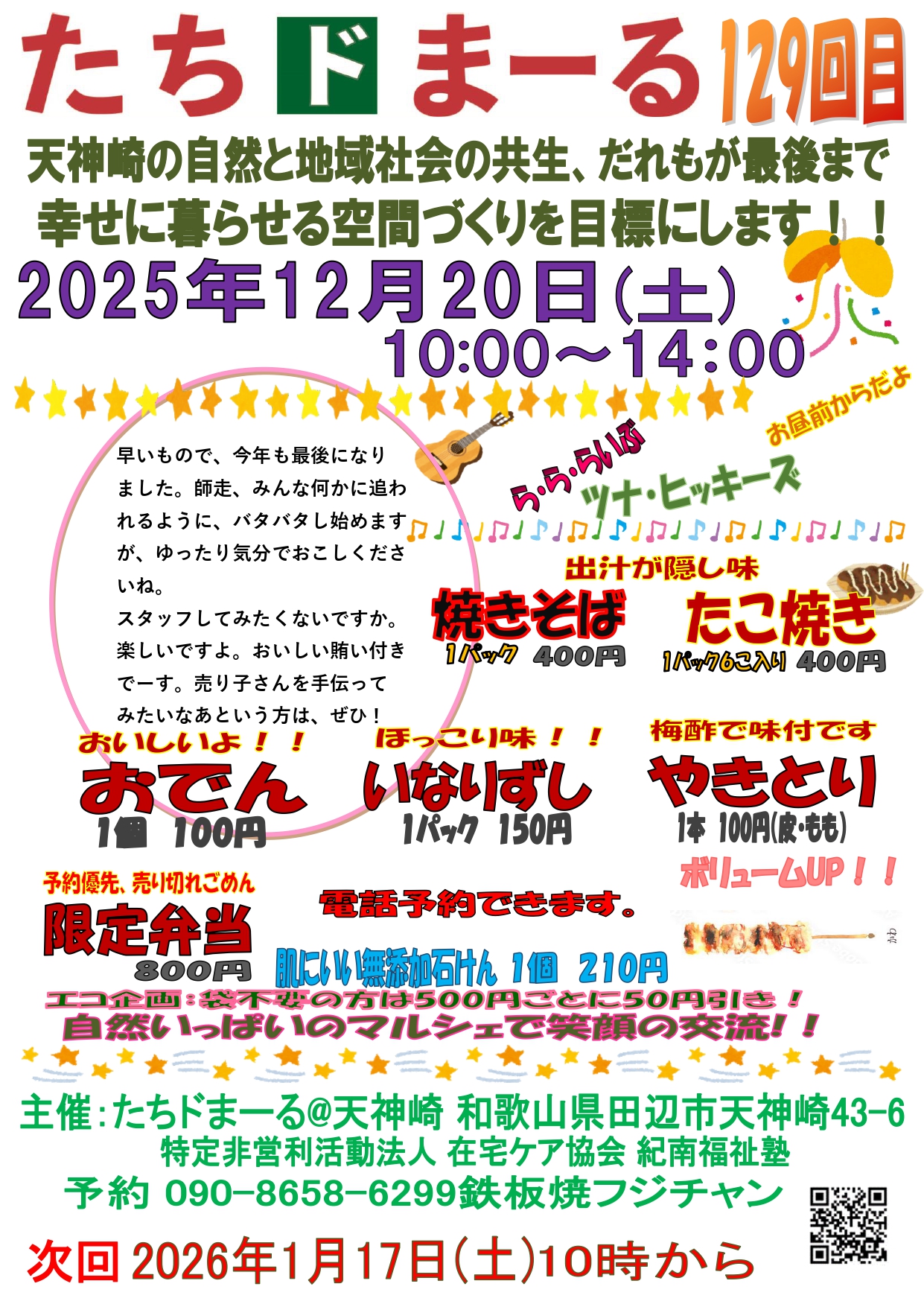 「たちドまーる」は、地域住民の交流を目的に、地元で楽しく続けられるイベントとして始まり、天神崎の自然と地域社会の共生、幸福の増進に寄与する新しい社会事業・活動を模索しています。