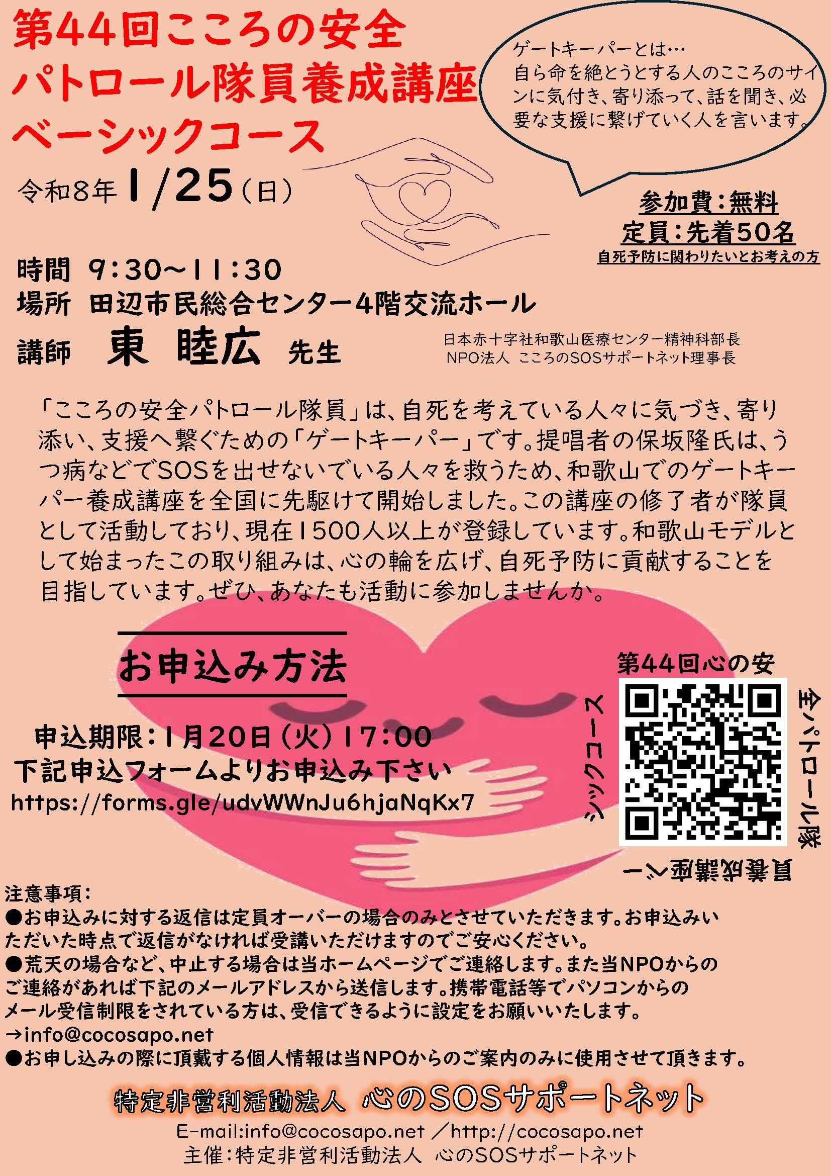 第44回 こころの安全パトロール隊員養成講座 ベーシックコース:申込フォーム