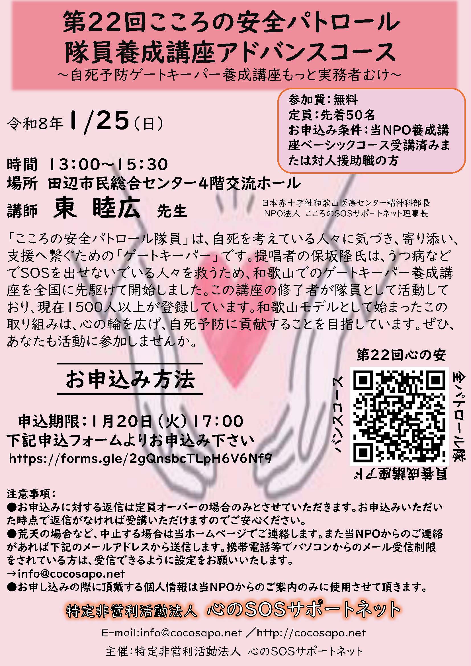 第22回 こころの安全パトロール隊員養成講座 アドバンスコース:申込フォーム