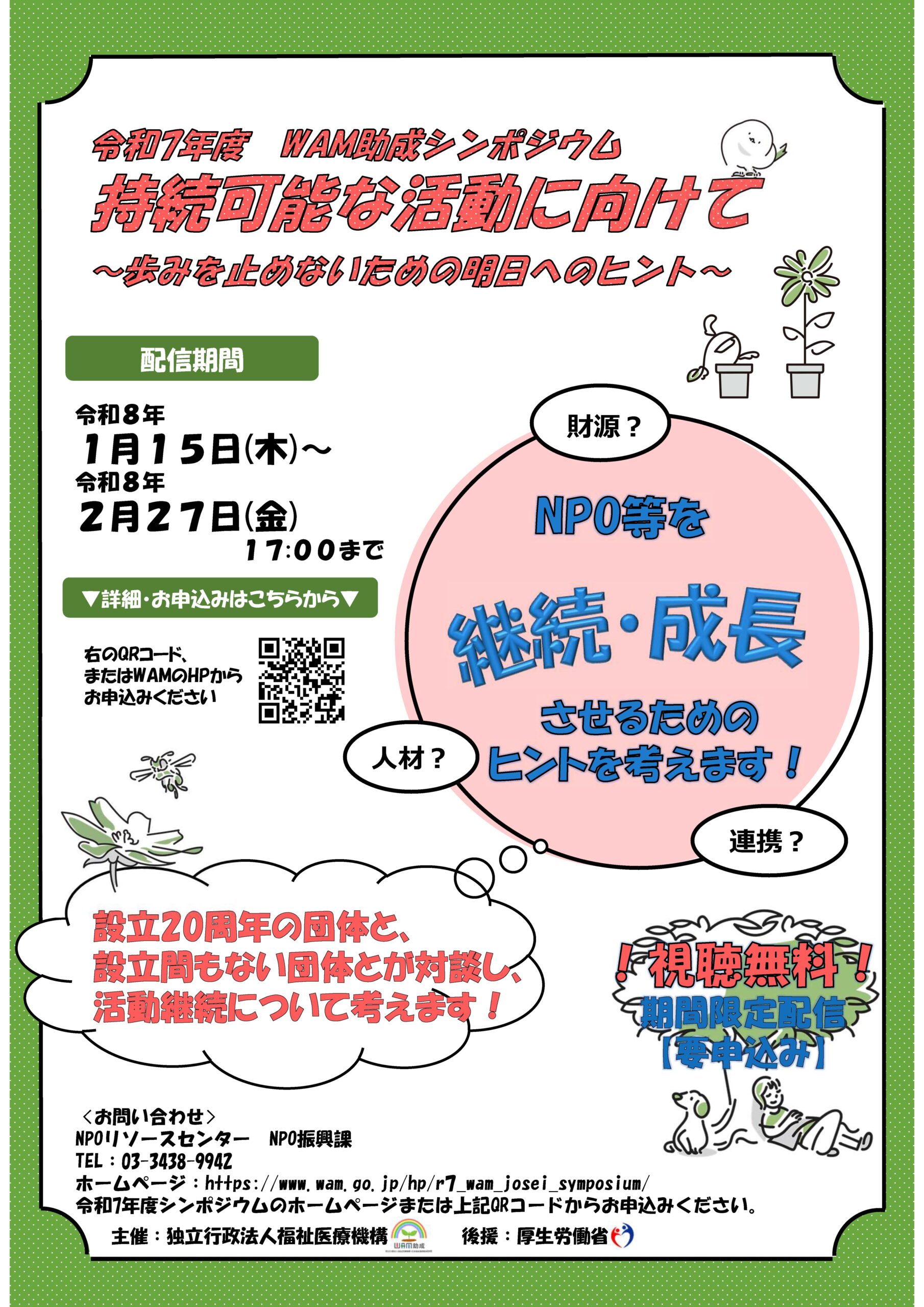 NPOの活動に興味がある方、地域づくりに関心がある方、どなたでもご視聴いただける期間限定のオンライン配信です。