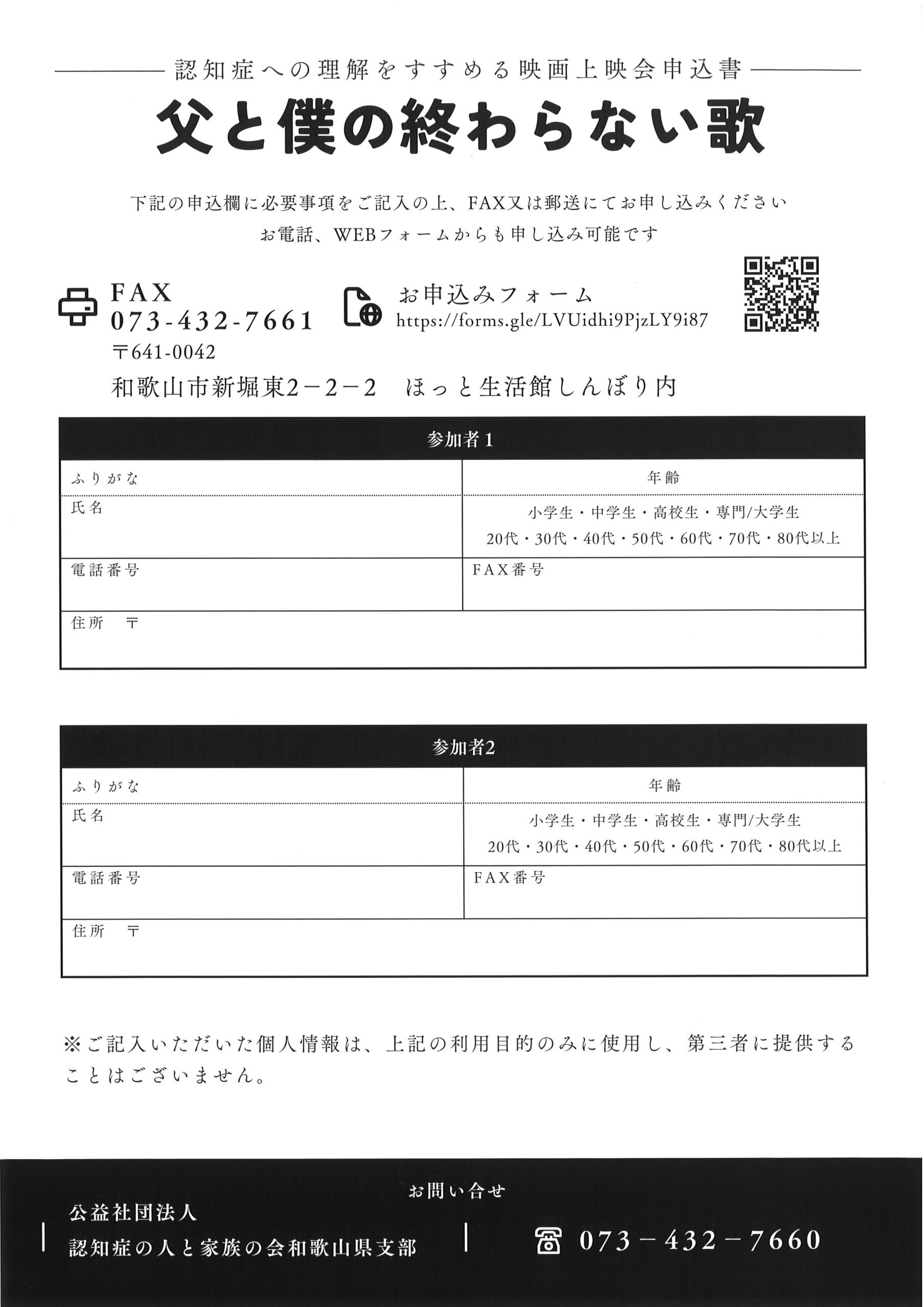 認知症への理解をすすめる映画上映会「父と僕の終わらない歌」:申込フォーム