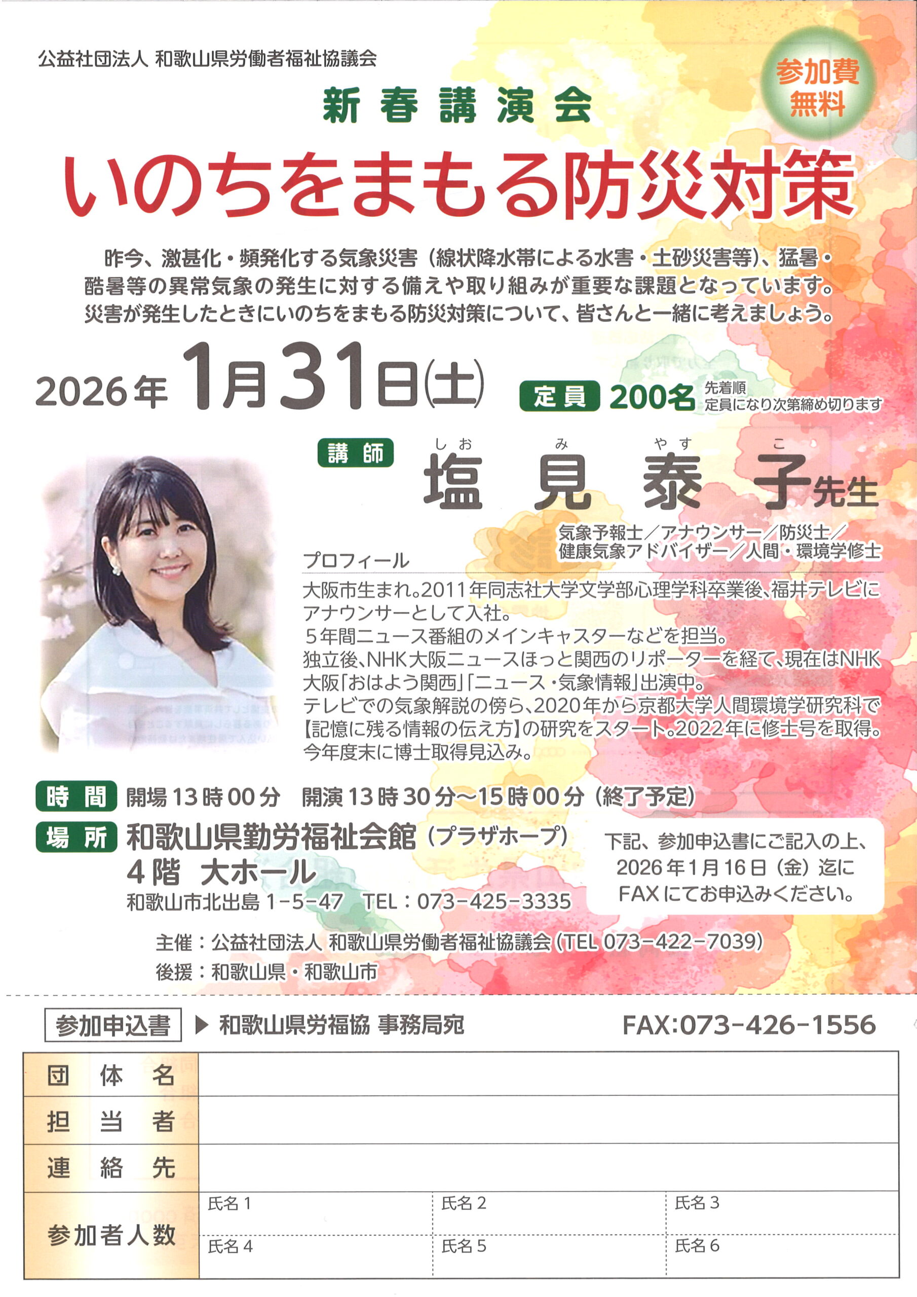 【場 所】和歌山県勤労福祉会館(プラザホープ) 4階 大ホール(和歌山市北出島1-5-47)