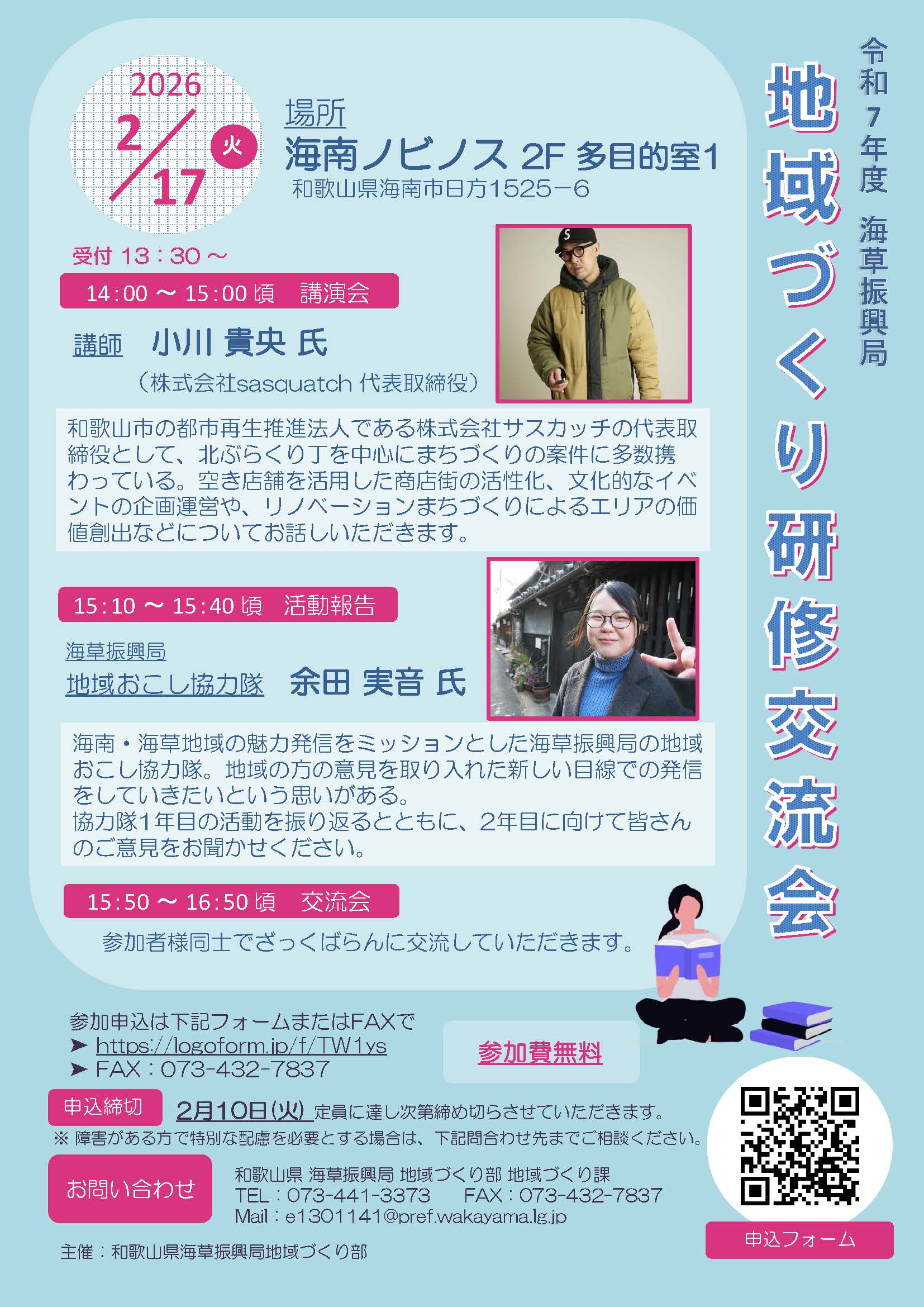 令和7年度 海草振興局地域づくり研修交流会(2月開催):申込フォーム