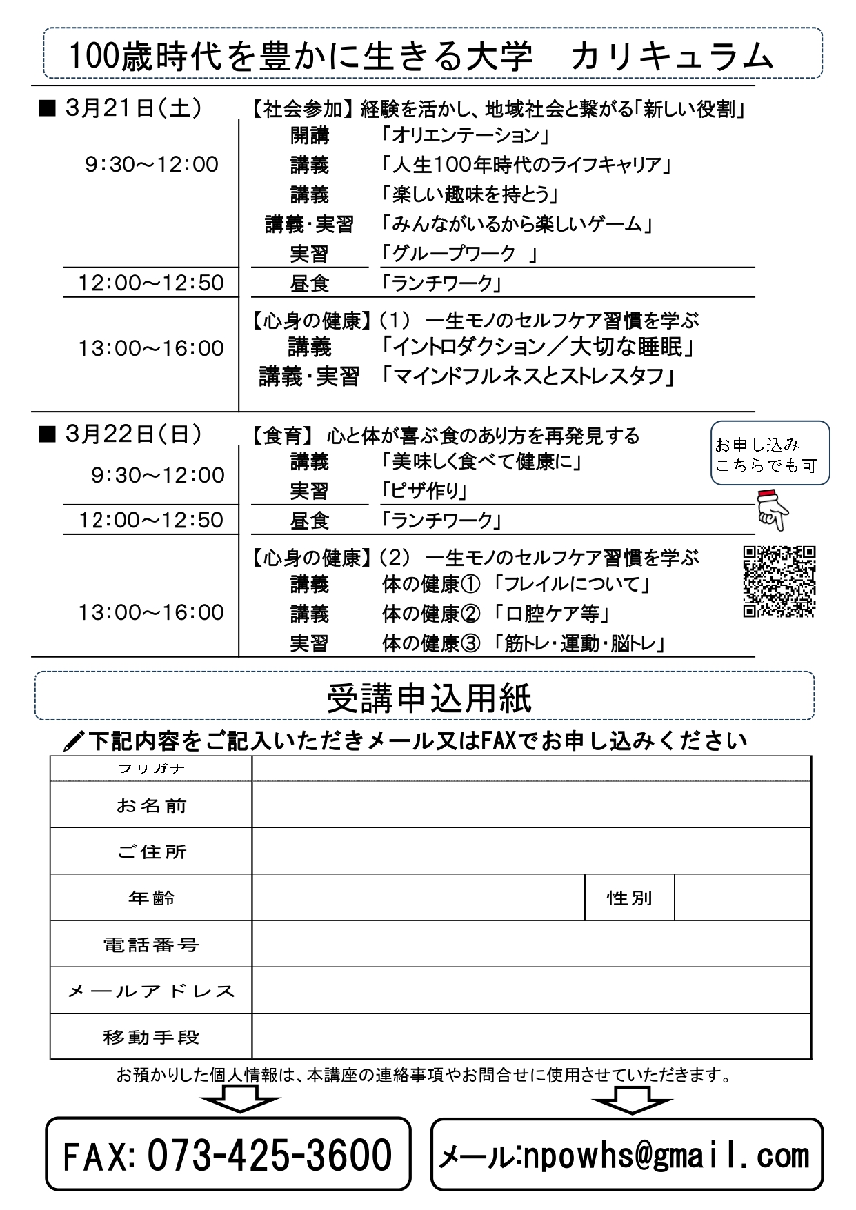 100歳時代を豊かに生きる大学:申込ページ