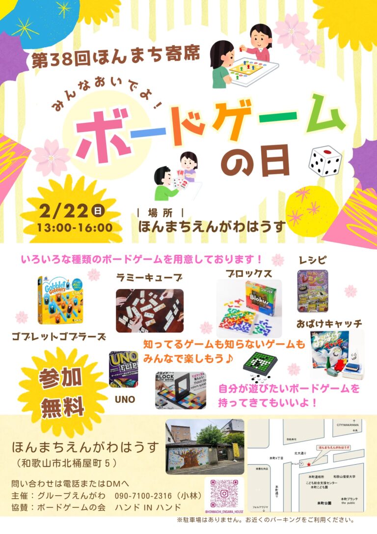 【場 所】ほんまちえんがわはうす(和歌山市北桶屋町5番地 本町公園北側)