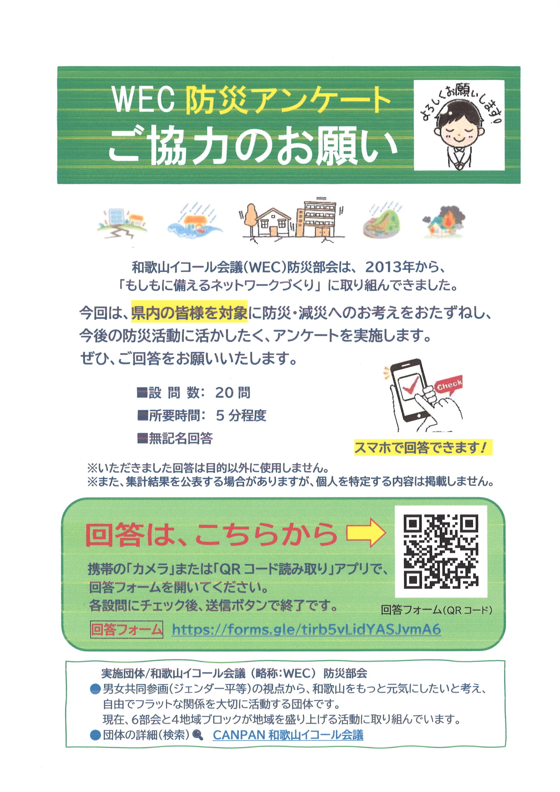 今回、和歌山イコール会議防災部会より、県民の皆様を対象とした防災・減災についてのアンケートを実施します。