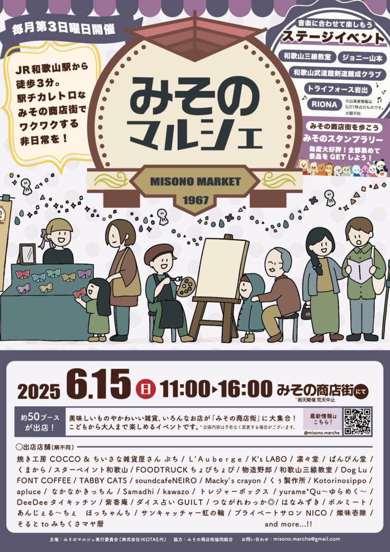 開始日時2025-12-07 13:00開催地和歌山市主催グループえんがわまちづくり文化芸術・スポーツイベント終了 -