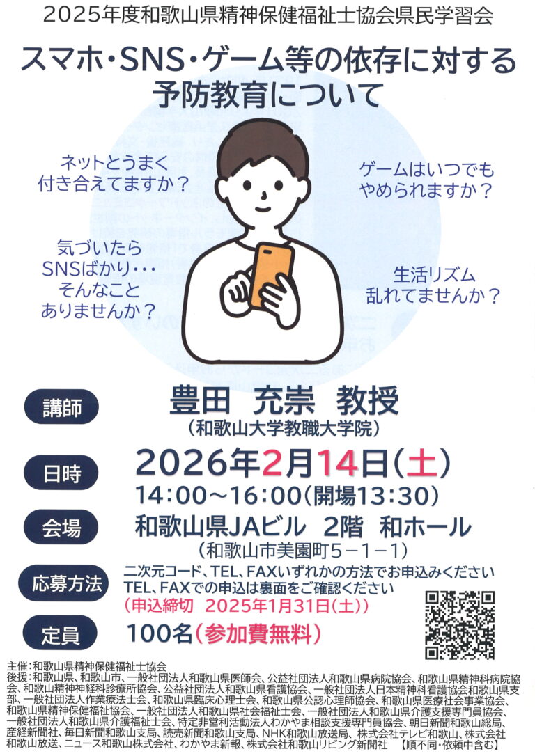 開始日時2026-02-14 14:00開催地和歌山市主催和歌山県精神保健福祉士協会福祉・医療 -