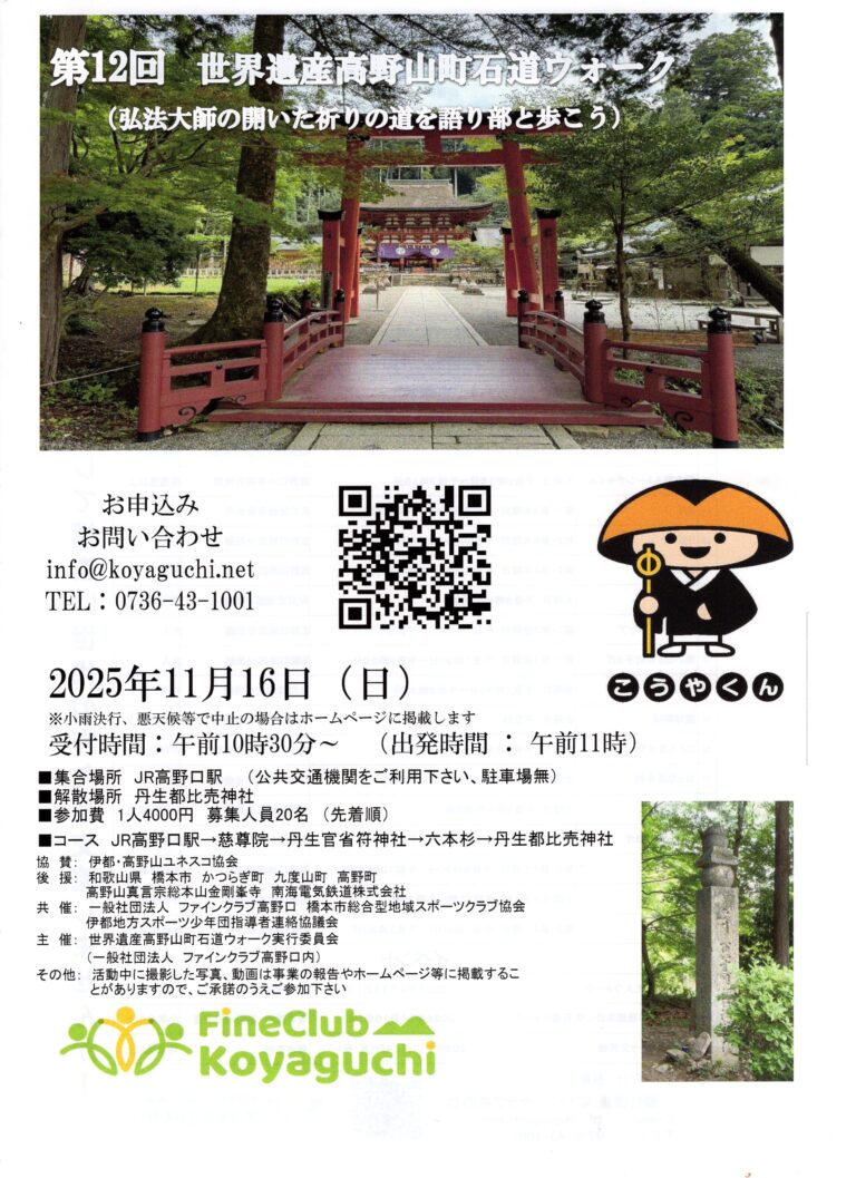 開始日時2025-11-16 11:00開催地橋本市主催世界遺産高野山町石道ウォーク実行委員会(一般社団法人 ファイクラブ高野口内)文化芸術・スポーツイベント終了 -