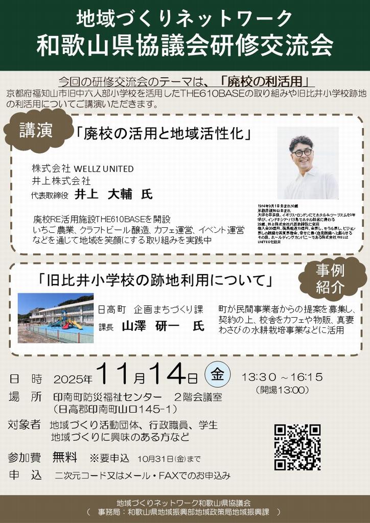 開始日時2025-11-14 13:30開催地日高郡主催地域づくりネットワーク和歌山県協議会まちづくりイベント終了 -